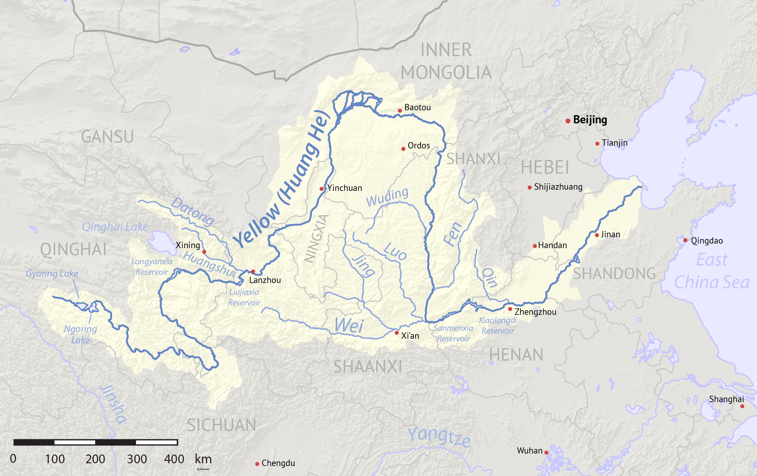 The Yellow River, also known as the Huang He, is the second-longest river in China, stretching for an estimated 3,900 miles. It runs from the Qinghai-Tibet Plateau in an easterly direction through the Chinese provinces of Qinghai, Gansu, Inner Mongolia, Shanxi, Henan, and Shandong, eventually emptying into the Bohai Sea. Their fertile floodplain in the form of the Loess Plateau was thus an extremely fertile agricultural environment for early human settlements.